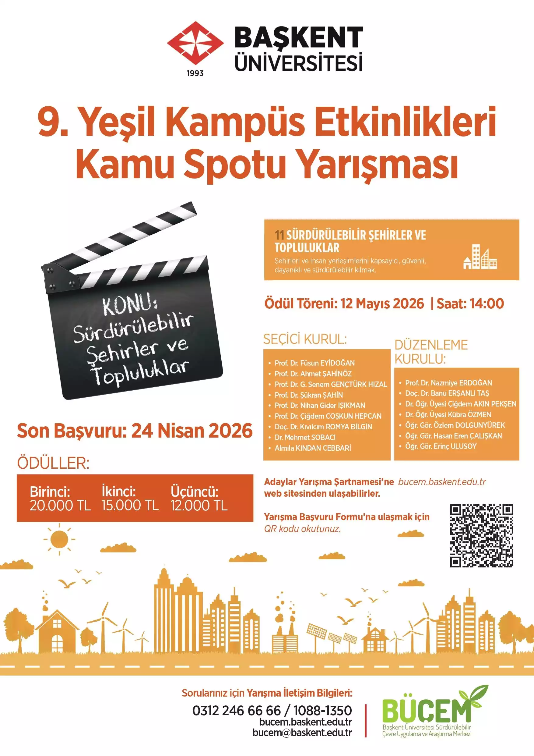 Başkent Üniversitesi Sürdürülebilir Çevre Uygulama ve Araştırma Merkezi tarafından bu yıl 9'uncusu düzenlenecek olan ödüllü 9. Yeşil Kampüs Etkinlikleri Kamu Spotu Yarışmasının konusu Birleşmiş Milletler tarafından kabul edilen 17 Sürdürülebilir Kalkınma Amaçlarından biri olan "SKA11: SÜRDÜRÜLEBİLİR ŞEHİRLER VE TOPLULUKLAR" olarak belirlenmiştir. Yarışma aracılığı ile Türkiye Üniversitelerinde öğrenim gören tüm öğrencilerin bir araya getirilmesi ve çevresel sorunların çözümüne katkı sağlamaları ve Sürdürülebilir Kalkınma Amaçları farkındalığını ve anlayışını artırmak amaçlanmaktadır.