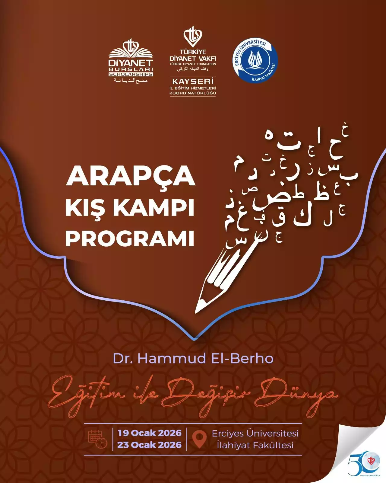 Fakültemiz Hocalarından Dr. Hammud el-Berho tarafından 19-23 Ocak 2026 tarihlerinde öğrencilerimize yönelik Arapça Kış Kampı Programı düzenlenecektir.