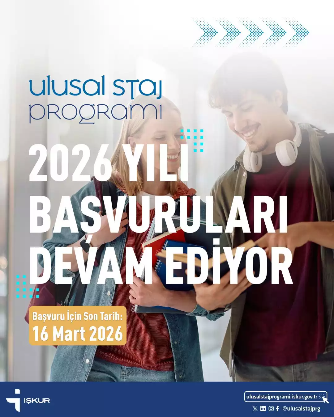 Cumhurbaşkanlığı himayelerinde, Türkiye İş Kurumu (İŞKUR) tarafından yürütülen Ulusal Staj Programı kapsamında 2026 yılı başvuruları devam ediyor.