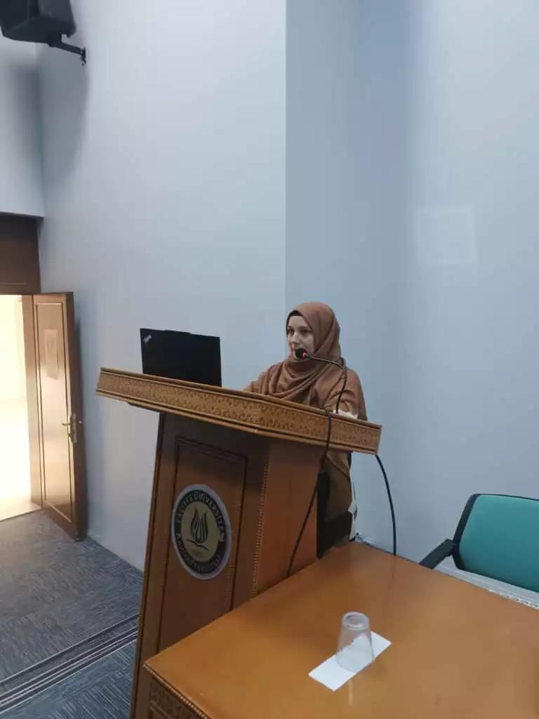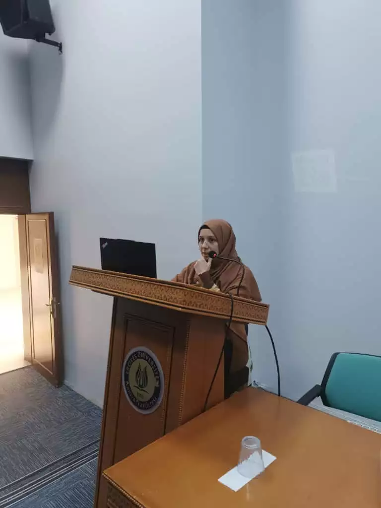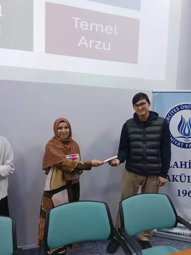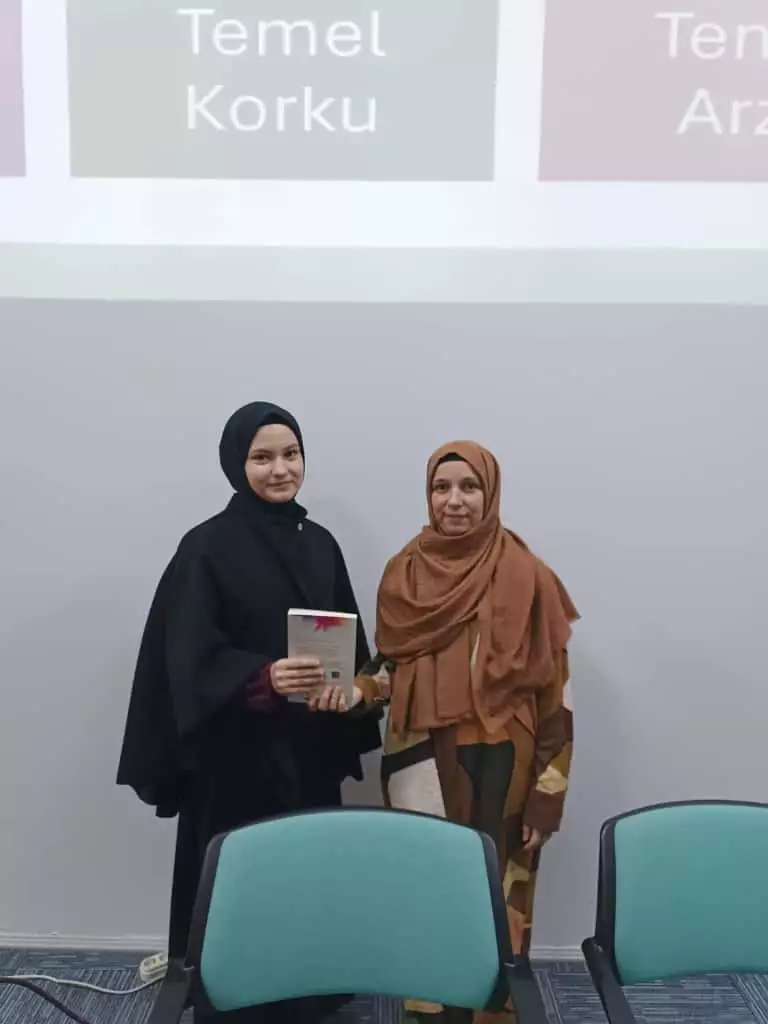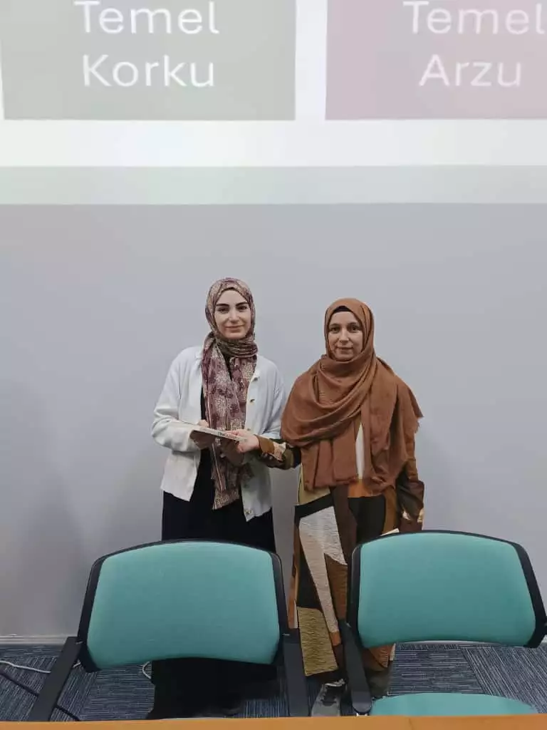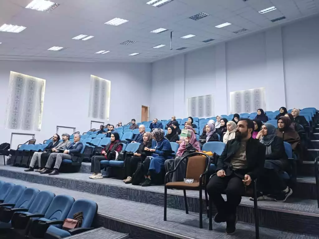 Fakültemizde düzenlenen Çarşamba Etkinliklerinin dördüncüsü 05.11.2025 Çarşamba günü saat 11:00'da İlahiyat Fakültesi Konferans Salonu'nda, Dr. Öğr. Üyesi Kübra ZÜMRÜT ORHAN'ın "Nefsin Esaretinden Ruhun Özgürlüğüne: Enneagramın Kendini Bilmedeki Rolü" konulu sunumuyla gerçekleştirilmiştir.