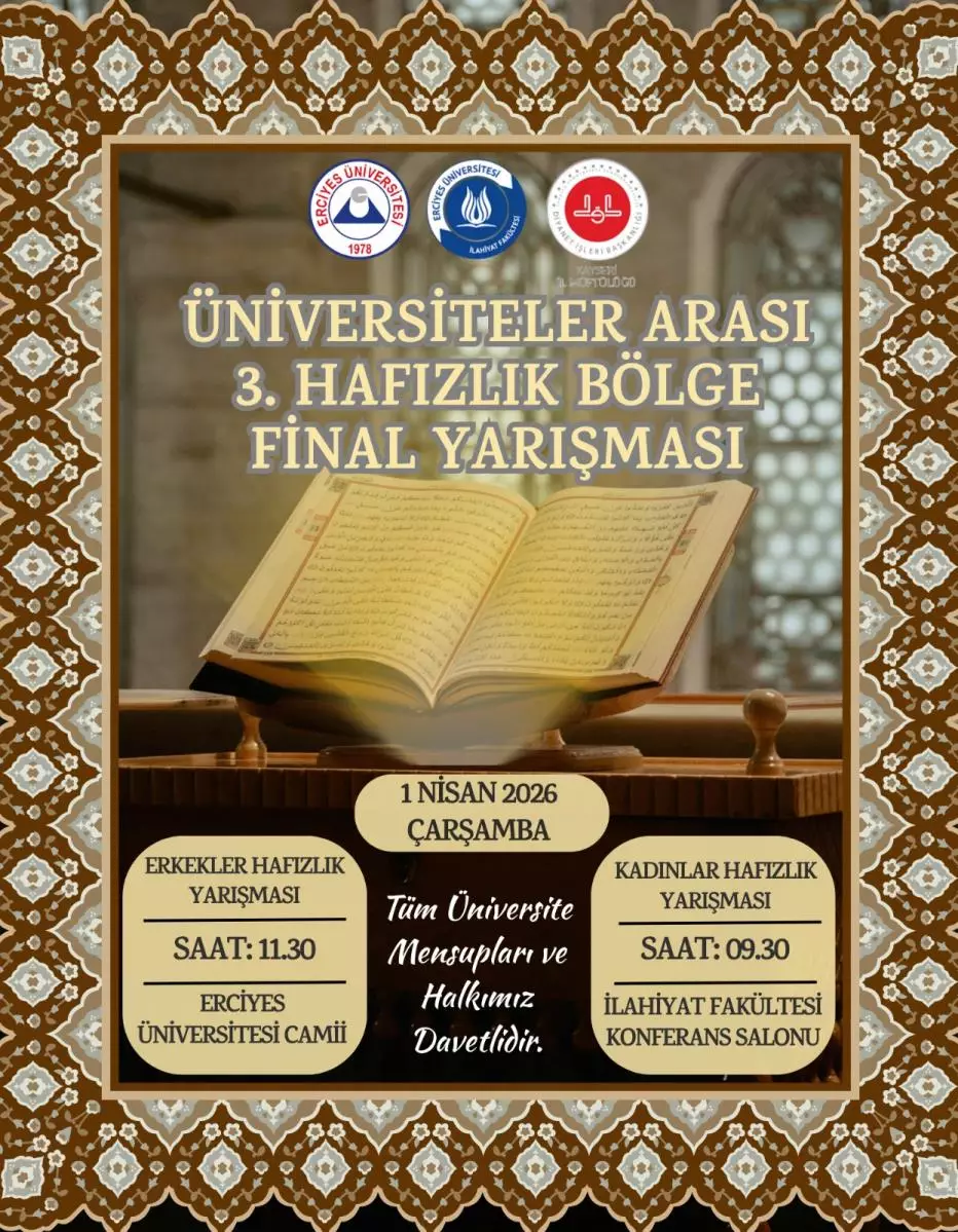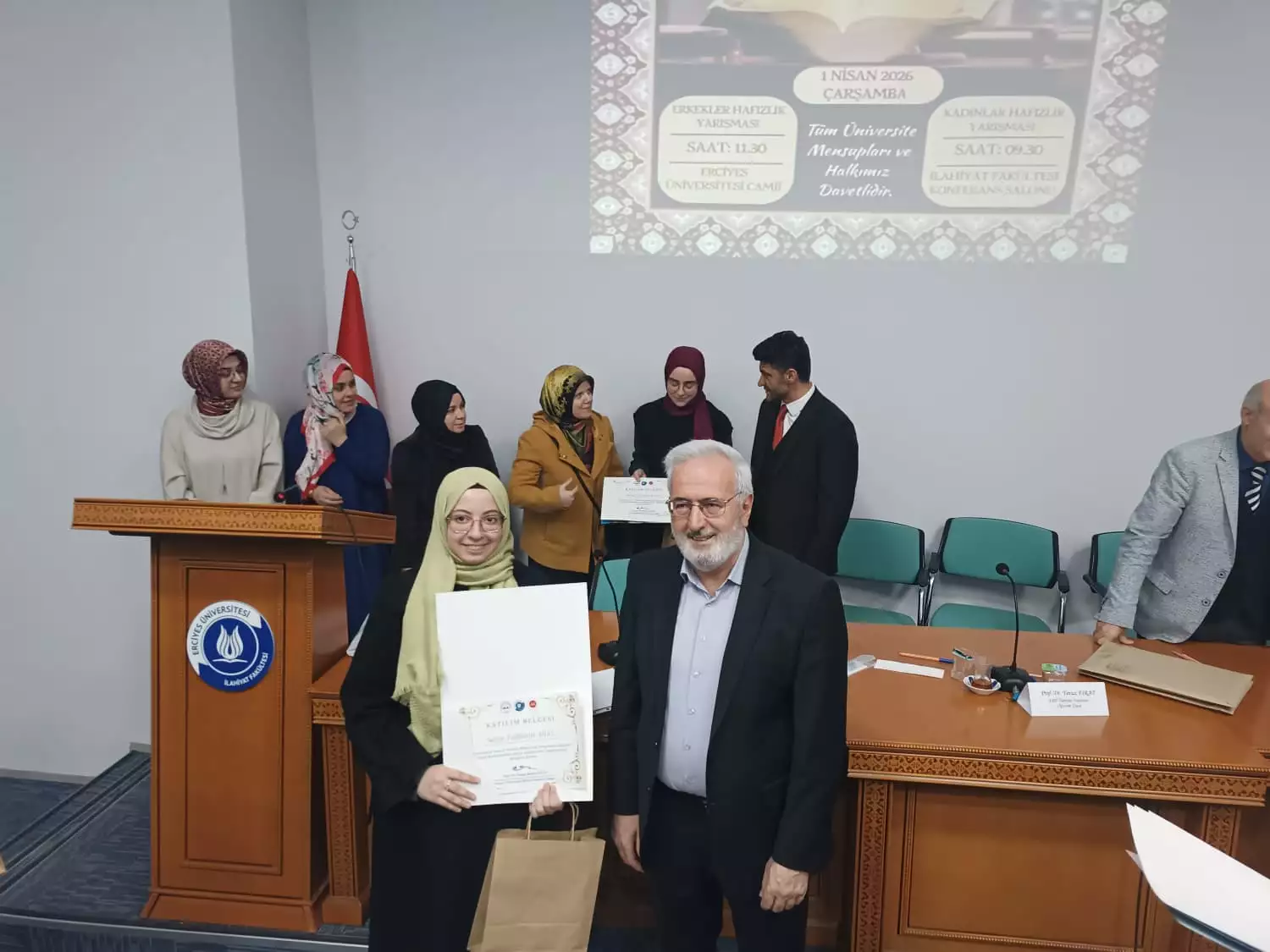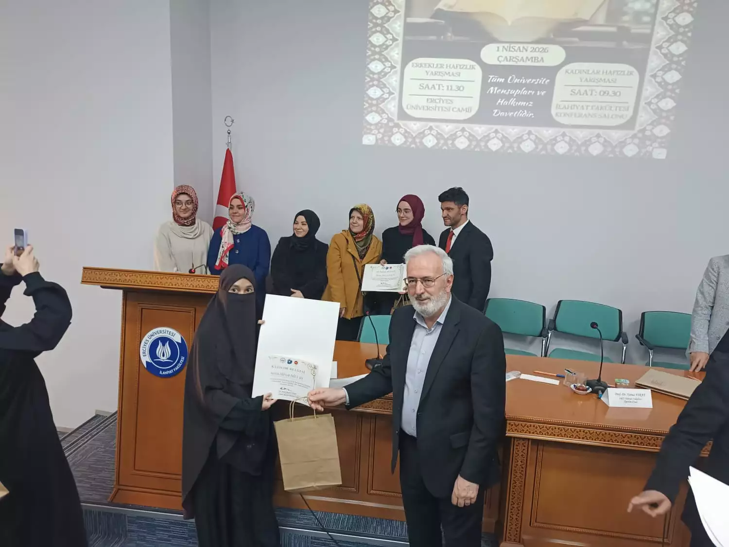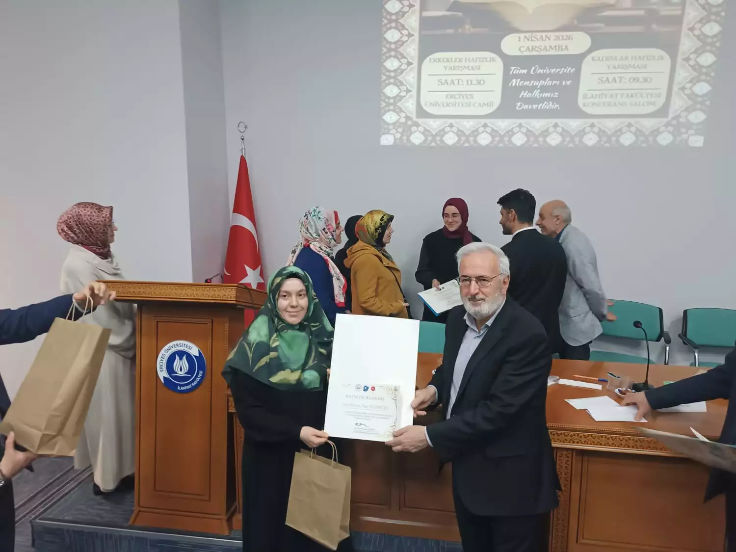 Üniversitemiz İlahiyat Fakültesi Konferans Salonu ve Erciyes Üniversitesi Camiinde gerçekleştirilen yarışmaya 13 öğrenci katıldı.