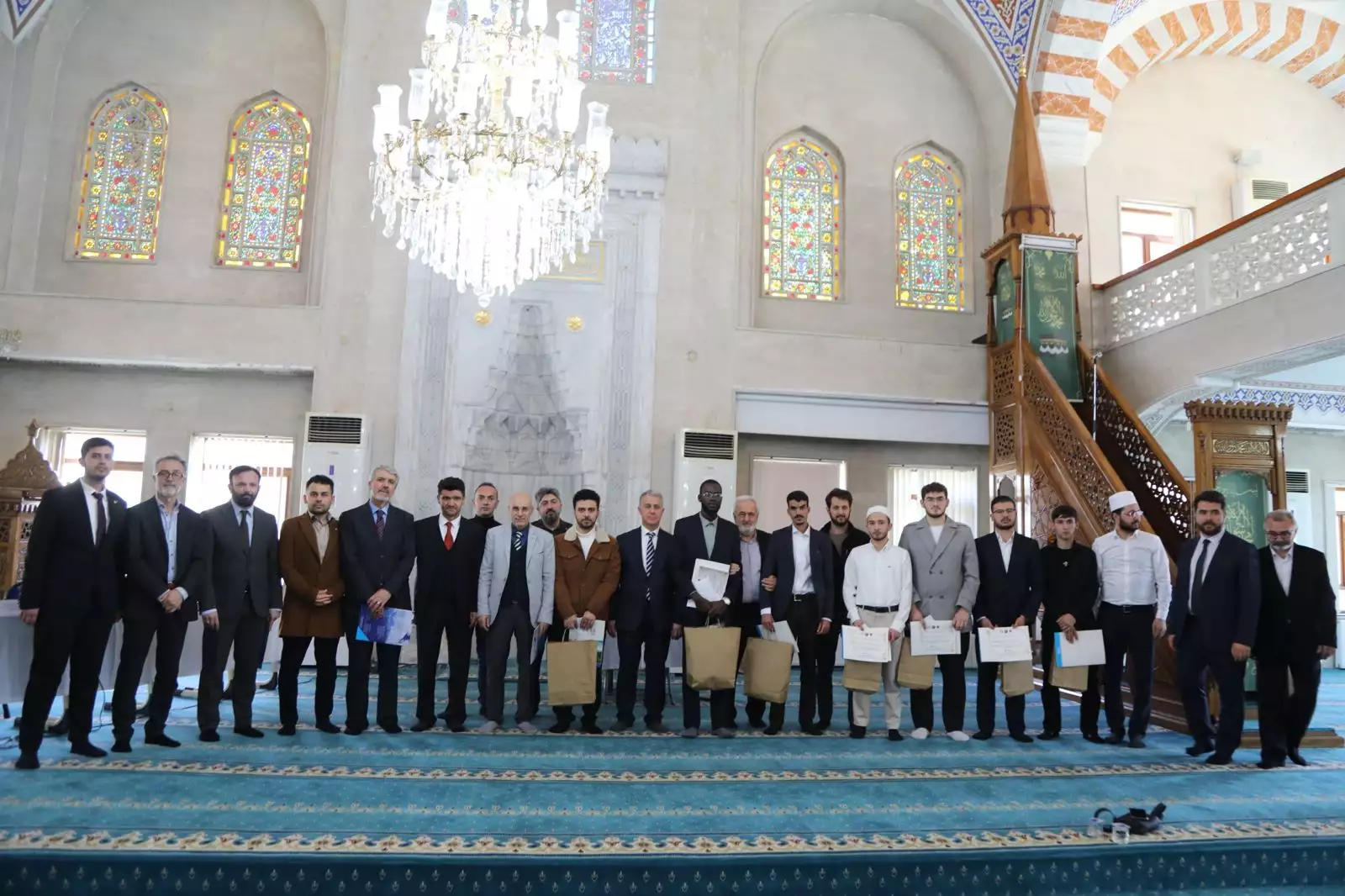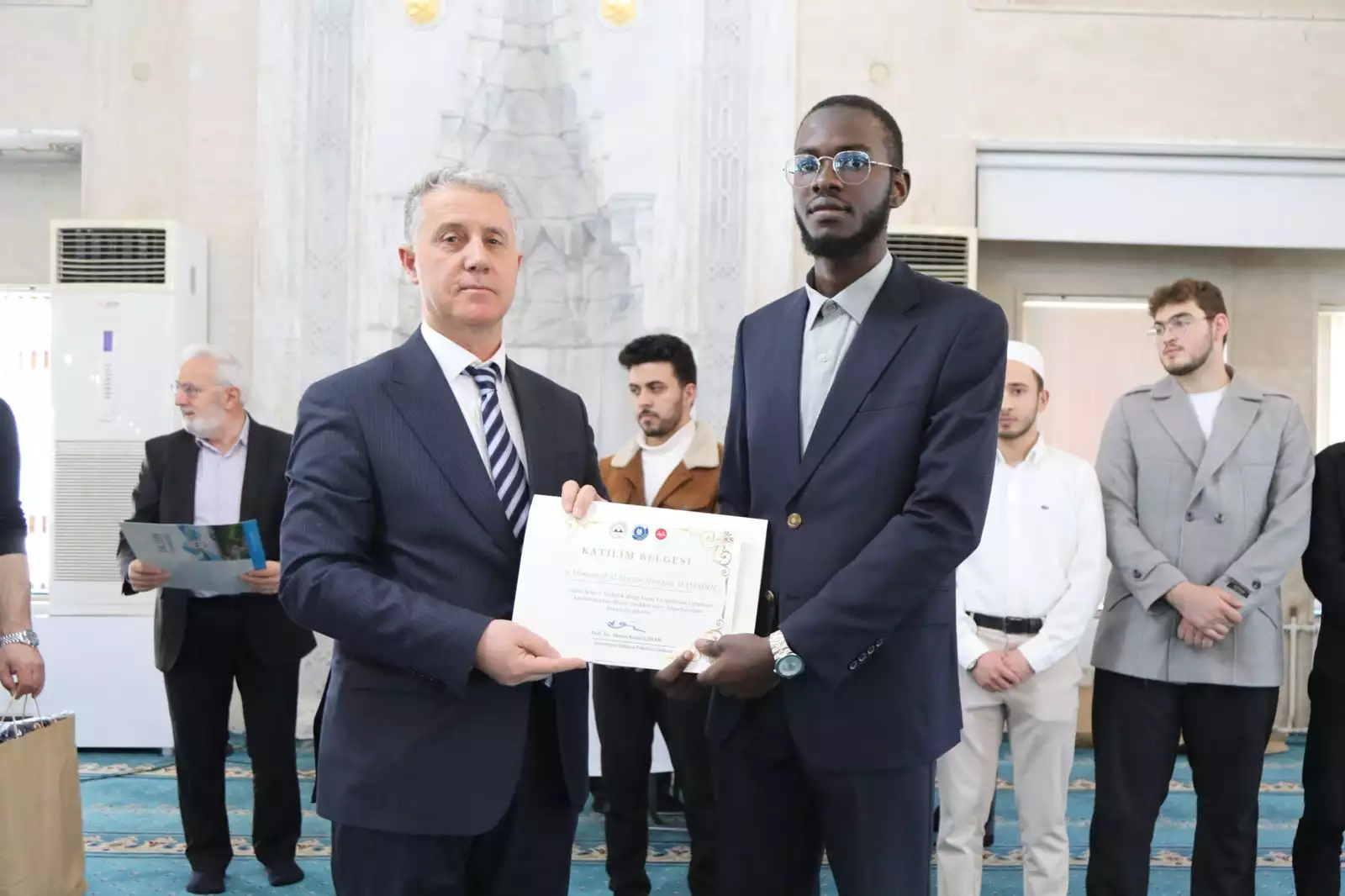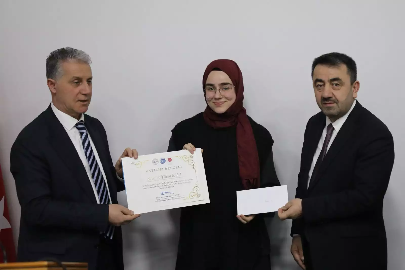 Yarışma sonunda dereceye giren öğrencilere hediyeleri İl Müftümüz Durmuş AYVAZ ve Fakültemiz Dekanı Prof. Dr. Ahmet Kamil CİHAN tarafından takdim edildi.